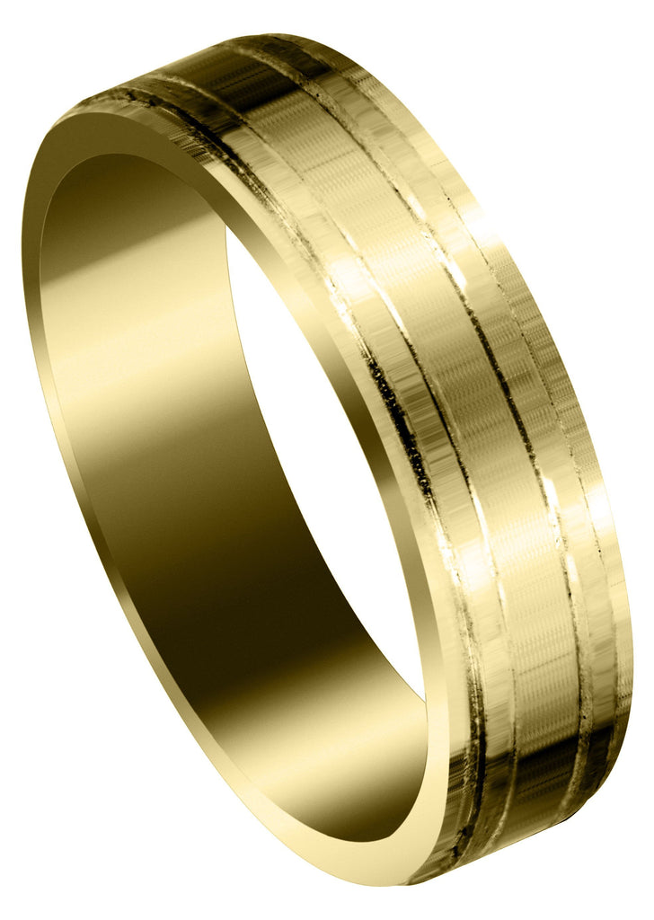 Yellow Gold Carved Modern Mens Wedding Band | CS / High Polish Finish (Damian)