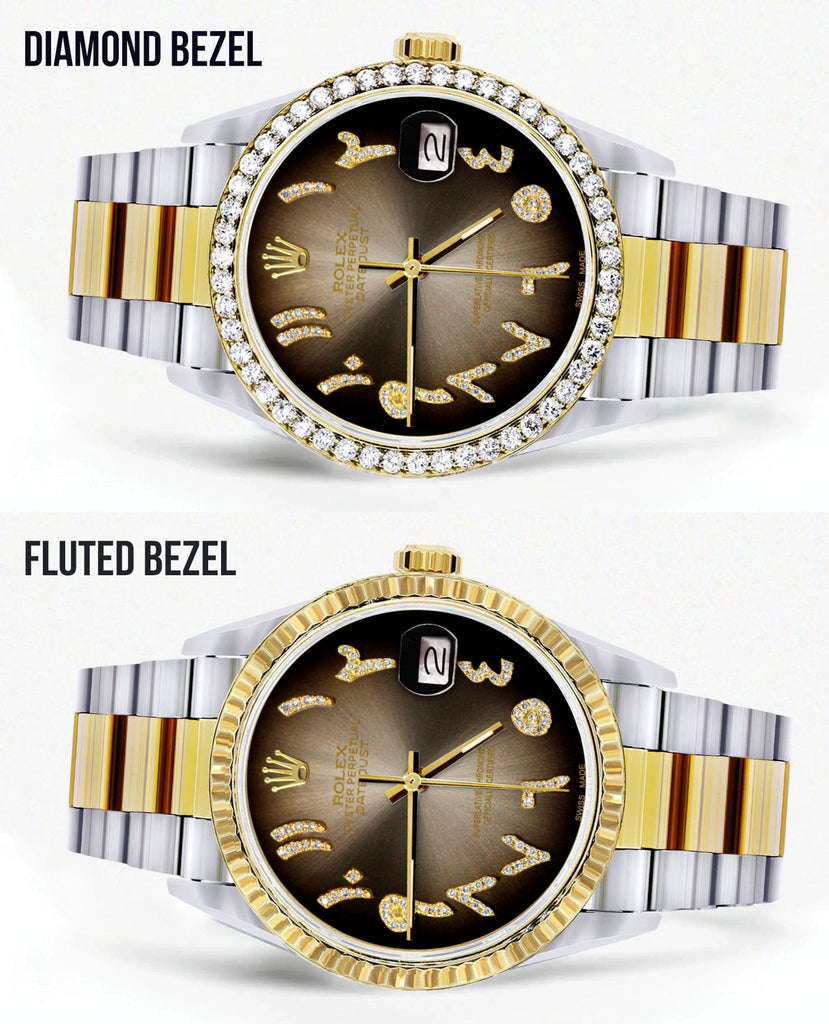 Gold & Steel Rolex Datejust Watch 16233 for Men | 36Mm | Brown Arabic Diamond Dial | Oyster Band