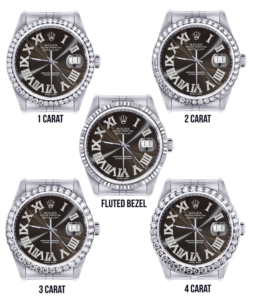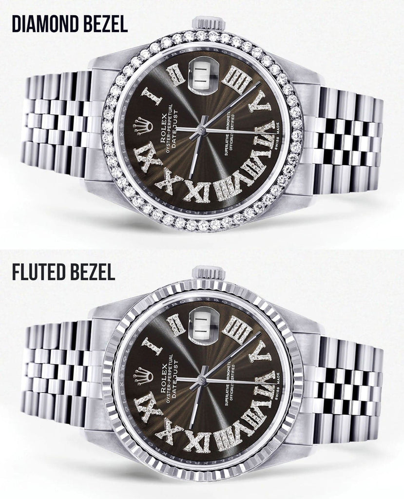 Diamond Mens Rolex Datejust Watch 16200 | 36Mm | Custom Dark Brown Roman Numeral Dial | Jubilee Band