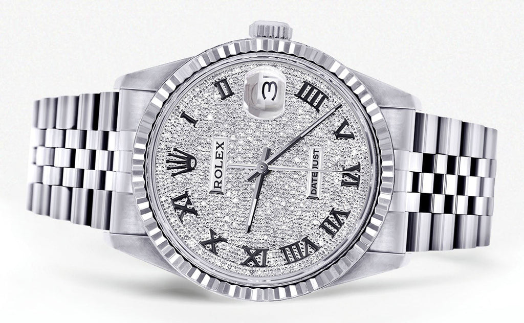 Womens Rolex Datejust Watch 16200 | Fluted Bezel | 36Mm | Diamond Roman Numeral Dial | Fluted Bezel | Jubilee Band