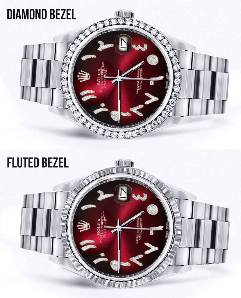 Diamond Mens Rolex Datejust Watch 16200 | 36Mm | Red Black Arabic Diamond Dial | Oyster Band