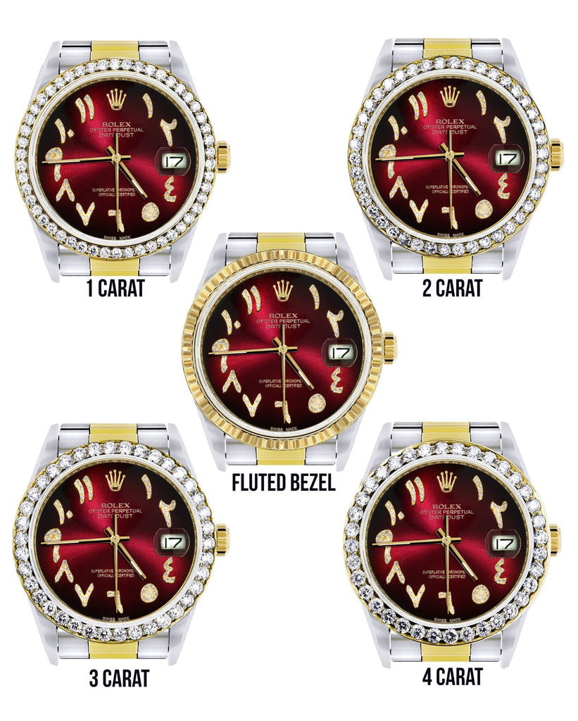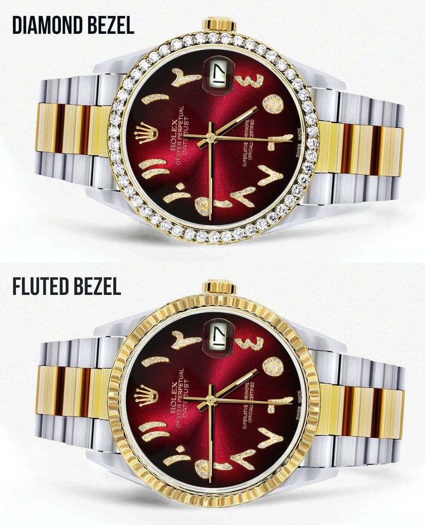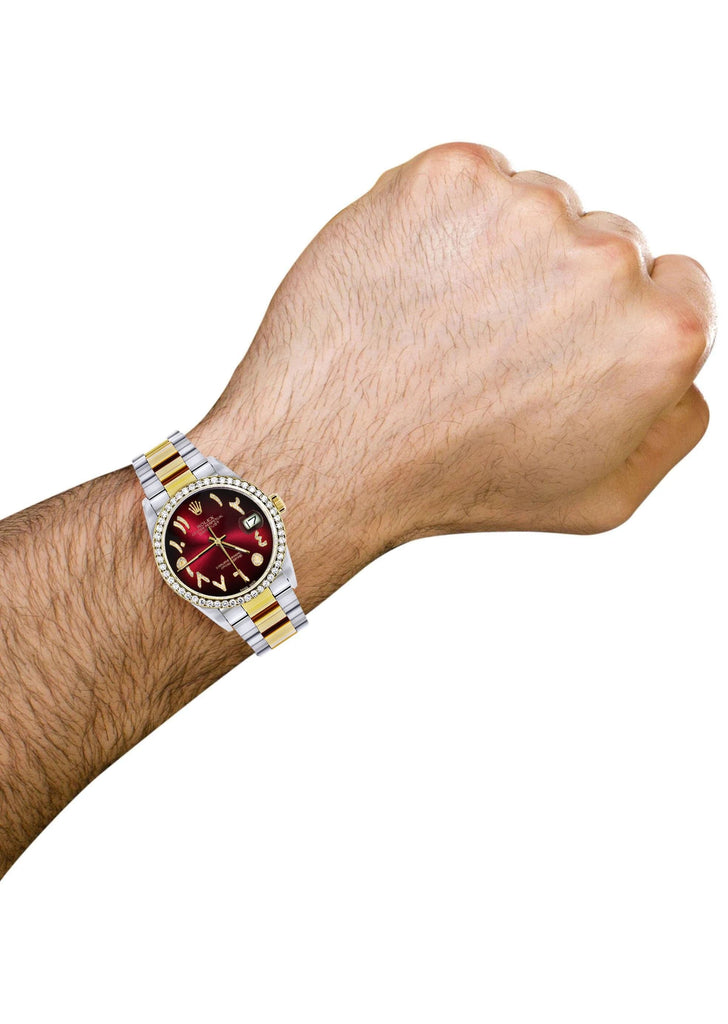 Gold & Steel Rolex Datejust Watch 16233 for Men | 36Mm | Red Black Arabic Diamond Dial | Oyster Band