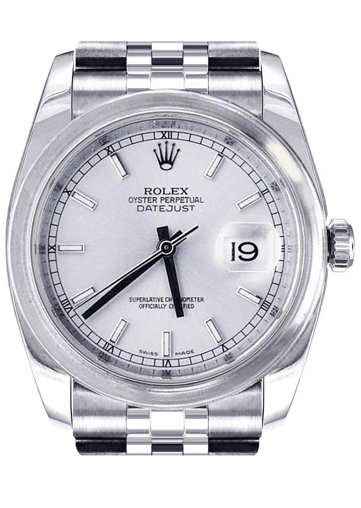 Diamond Rolex Datejust | Stainless Steel | Diamond Silver Roman Numeral Dial | 36 MM