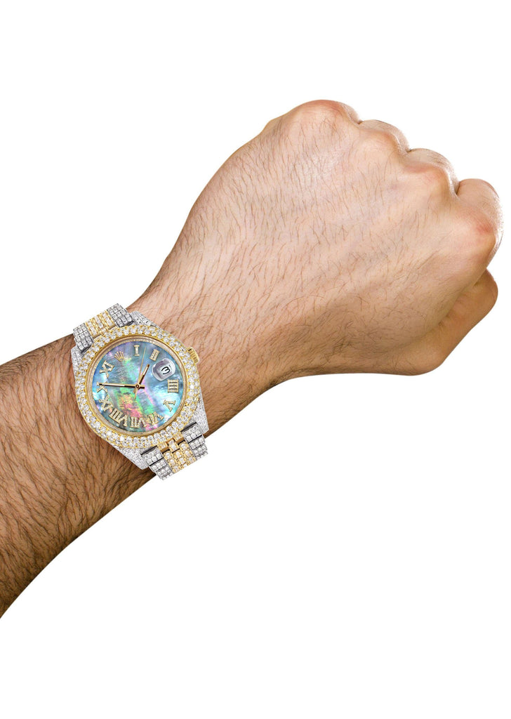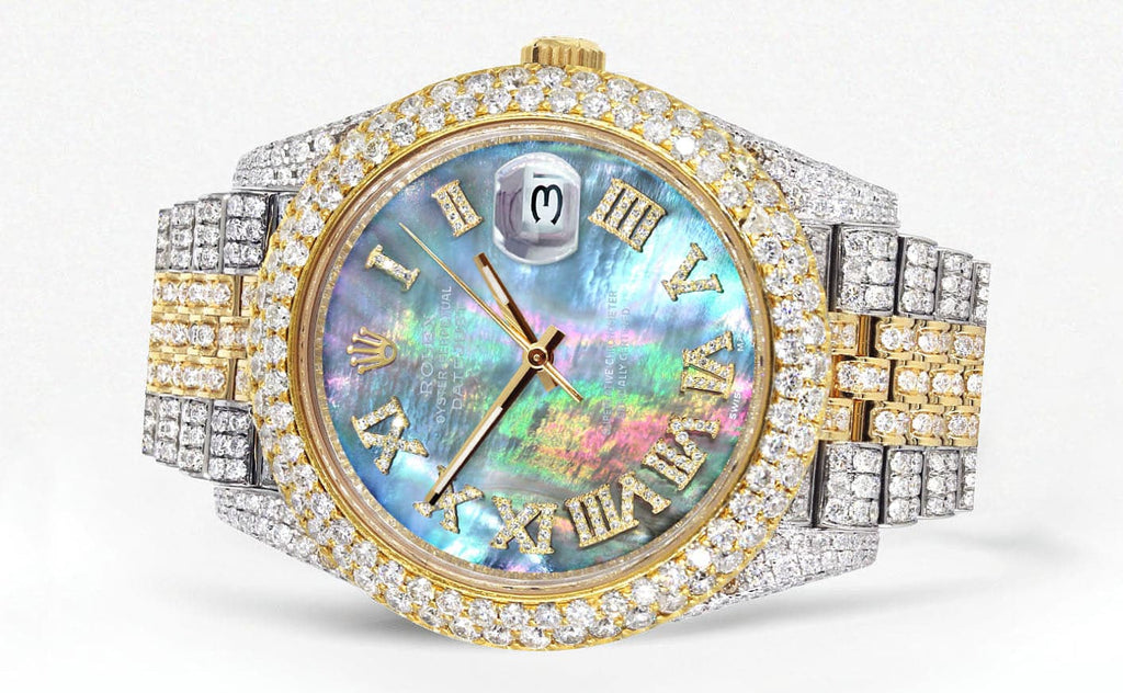 Diamond Iced Out Rolex Datejust 41 | 25 Carats Of Diamonds | Abalone Mother of Pearl Dial | Two Tone | Two Row | Jubilee Band