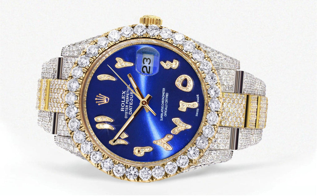 Diamond Iced Out Rolex Datejust 41 | 25 Carats Of Diamonds | Custom Blue Arabic Numeral Diamond Dial | Two Row | Oyster Band