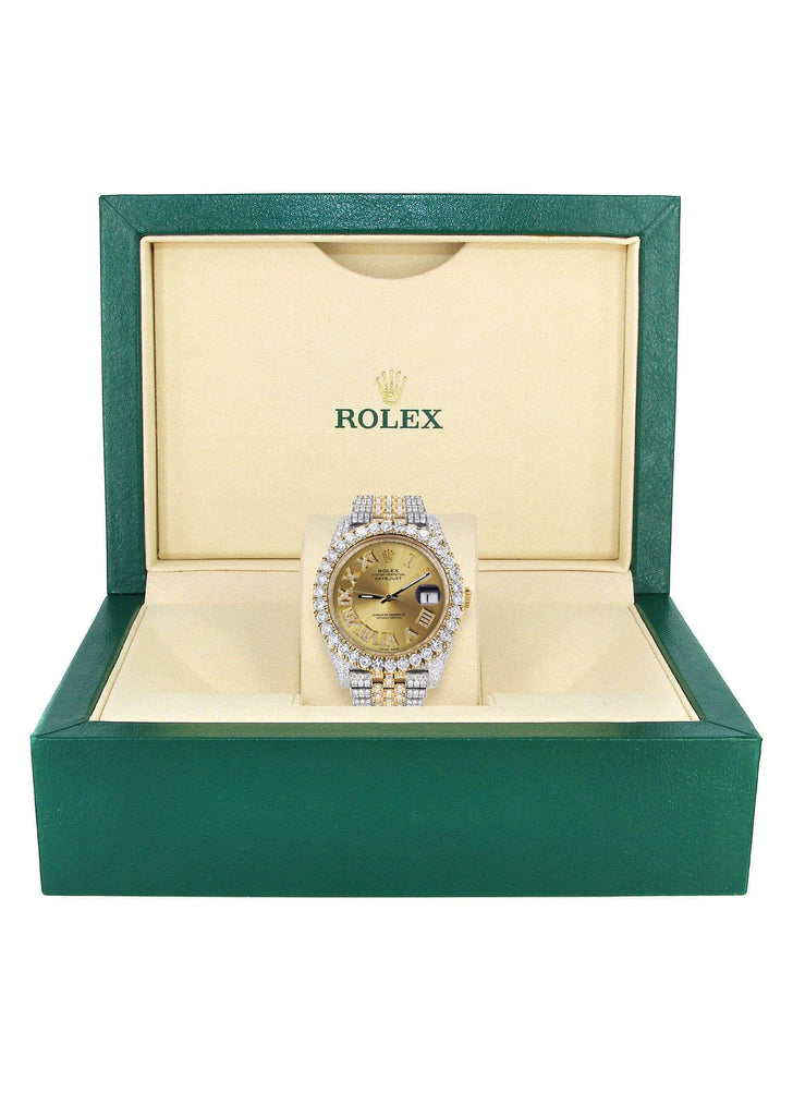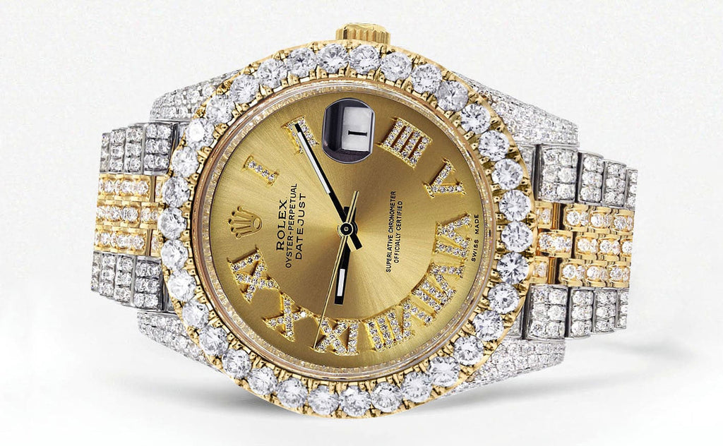 Diamond Iced Out Rolex Datejust 41 | 25 Carats Of Diamonds | Custom Gold Roman Numeral Diamond Dial | Two Tone | Jubilee Band