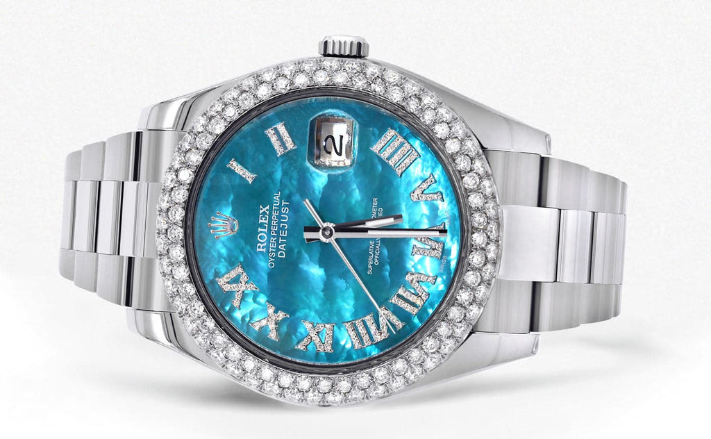 -Custom Aquamarine Mother of Pearl Roman Numeral Dial
