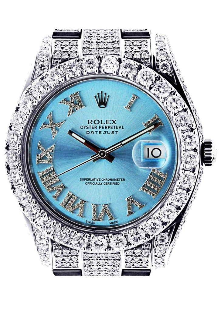 Diamond Rolex Datejust 2 | Stainless Steel | Custom Blue Roman Numeral Dial | 41 MM | 16.55 Carats