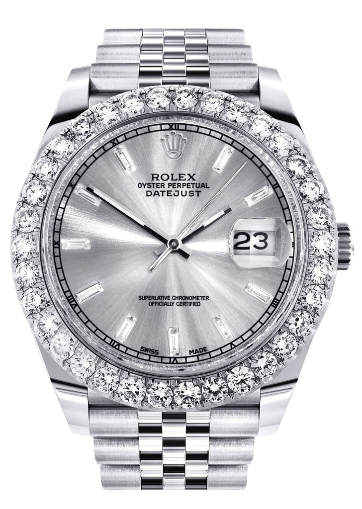Diamond Iced Out Rolex Datejust 41 | 25 Carats Of Diamonds | Custom Silver Diamond Dial | Jubilee Band