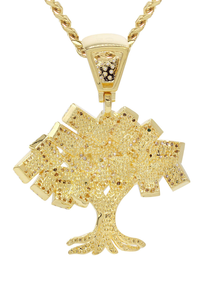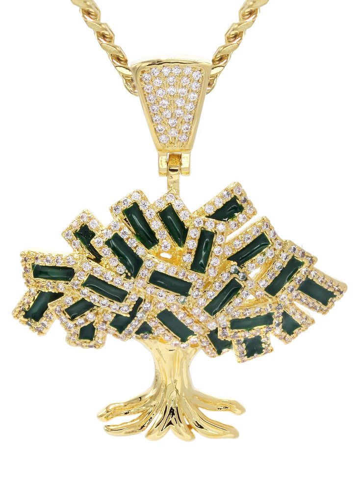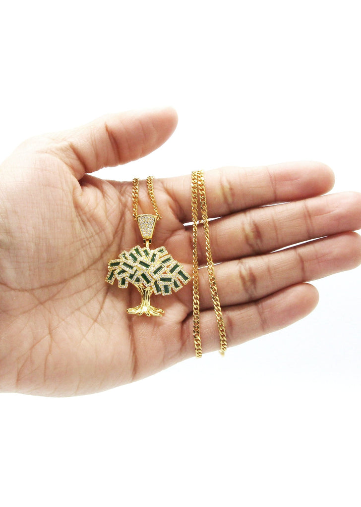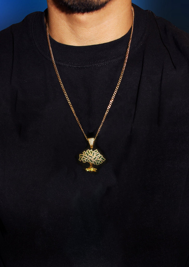 Gold Plated Cuban Link Chain & Tree Pendant Which weighs 17 Grams. The Width Of The Pendant Is 1.4 Inches And The Length Of The Pendant Is 1.7 Inches. The Width Of The Chain Is 3mm And The Length Can Be Adjusted Above.