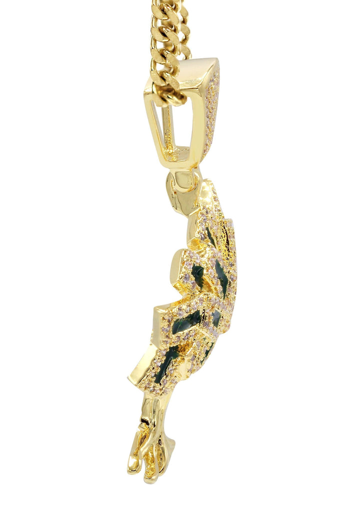 Mens Gold Plated Cuban Link Chain & Tree Pendant | Appx. 17 Grams