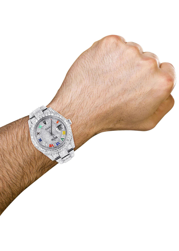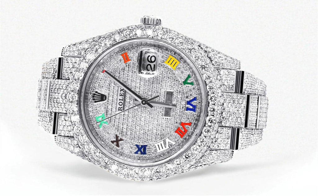 Diamond Iced Out Rolex Datejust 41 | 25 Carats Of Diamonds | Custom Color Roman Dial | Two Row | Oyster Band