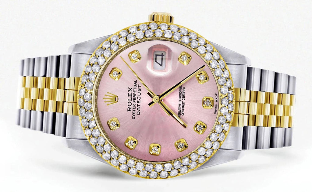 Diamond Gold Rolex Watch For Men 16233 | 36Mm | Custom Rose Dial | Two Row 4.25 Carat Bezel | Jubilee Band