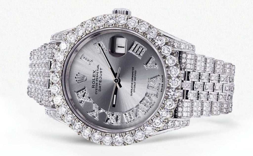 Diamond Iced Out Rolex Datejust 41 | 25 Carats Of Diamonds | Custom Silver Roman Diamond Dial | Jubilee Band