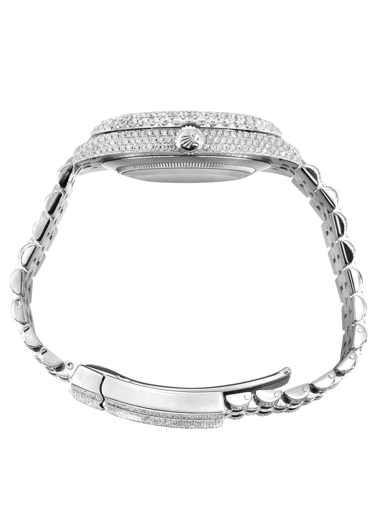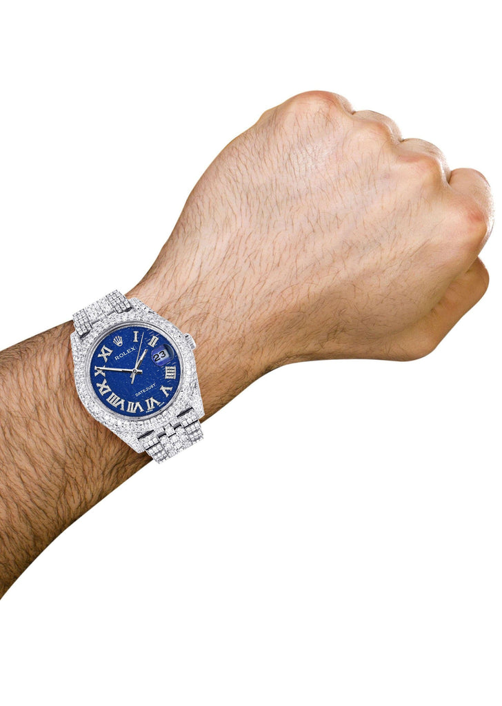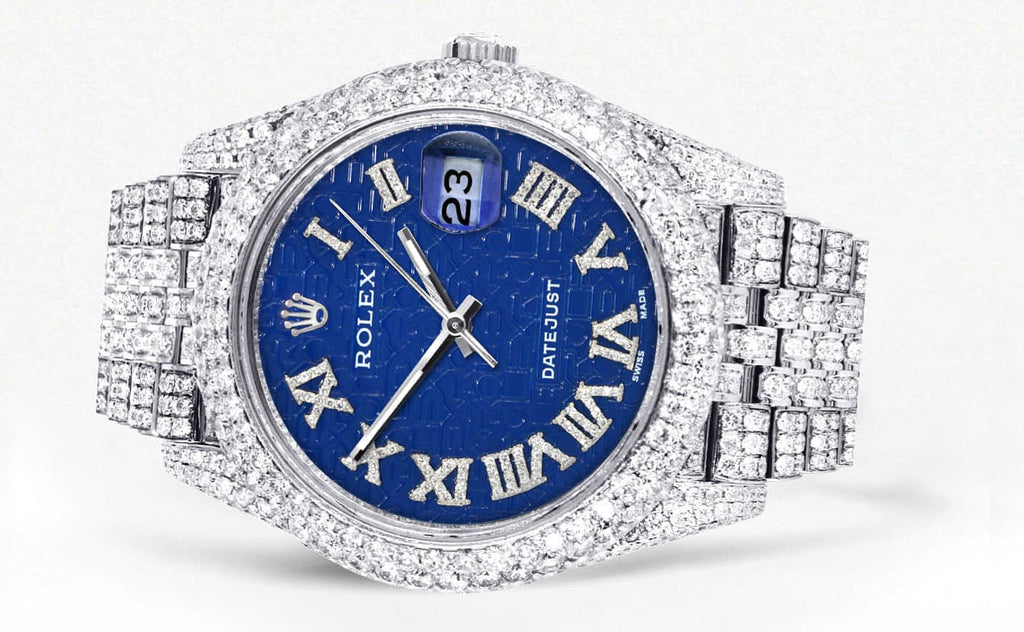 Diamond Iced Out Rolex Datejust 41 | 25 Carats Of Diamonds | Custom Blue Text Pattern Dial | Two Row | Jubilee Band