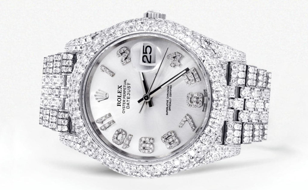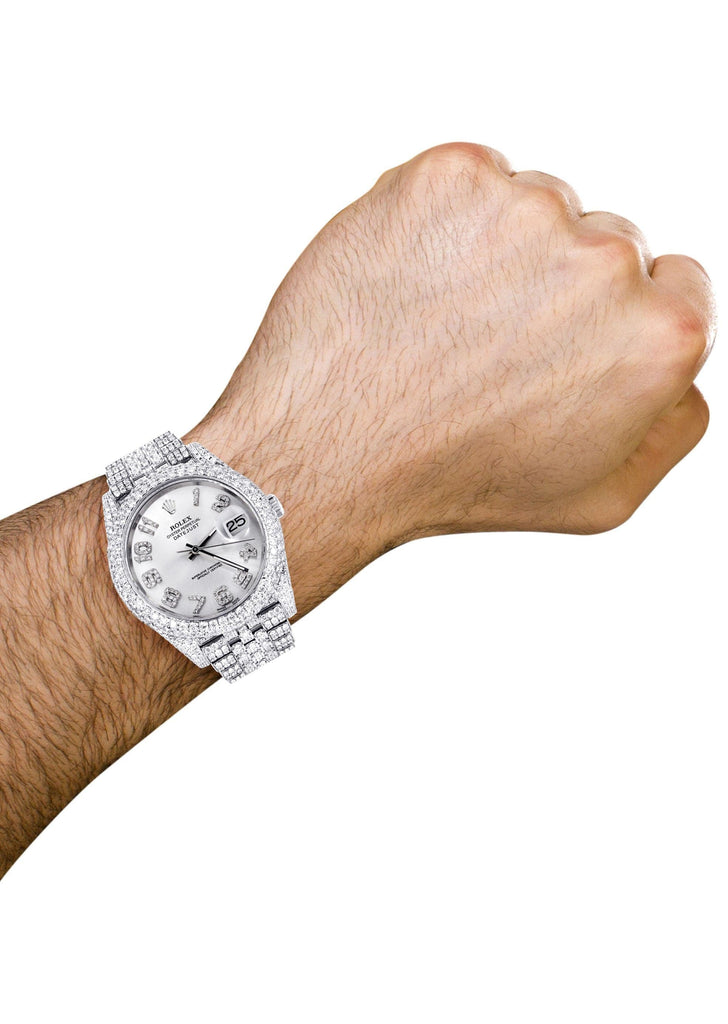 Diamond Iced Out Rolex Datejust 41 | 25 Carats Of Diamonds | Custom Silver Diamond Dial | Two Row | Jubilee Band