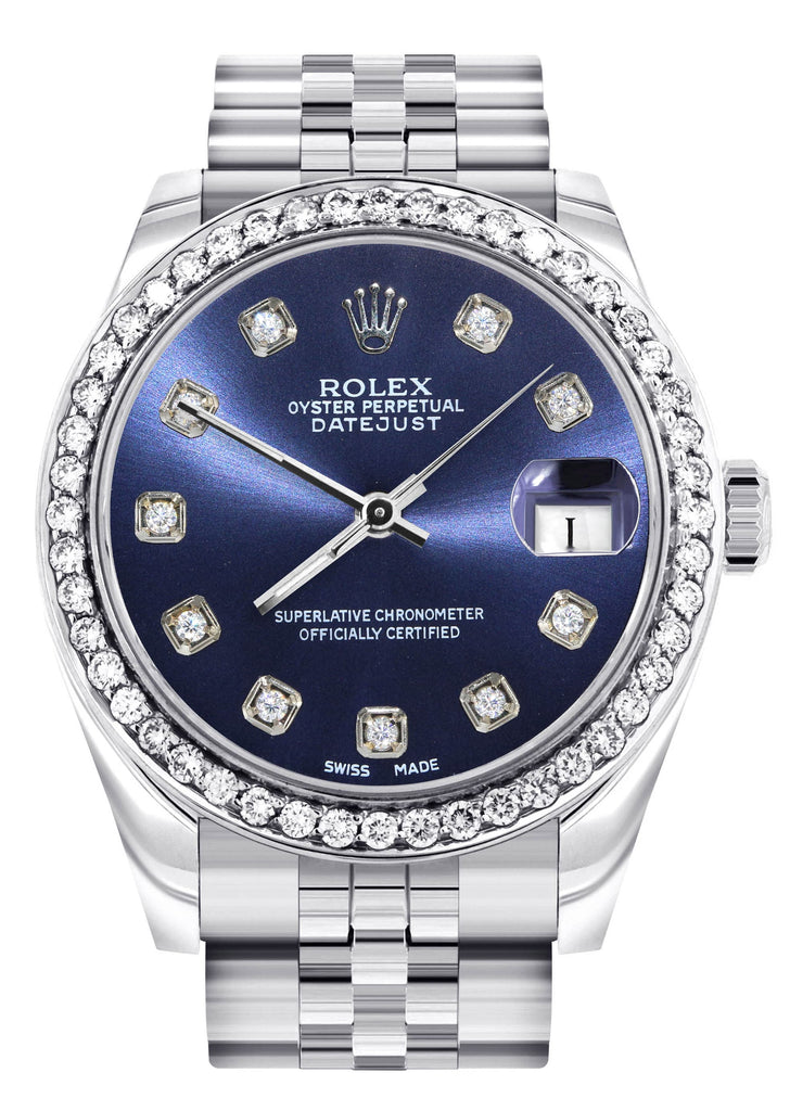 Diamond Rolex Watch | 68274 | Diamond Bezel | 31MM | Blue Diamond Dial | Jubilee Band