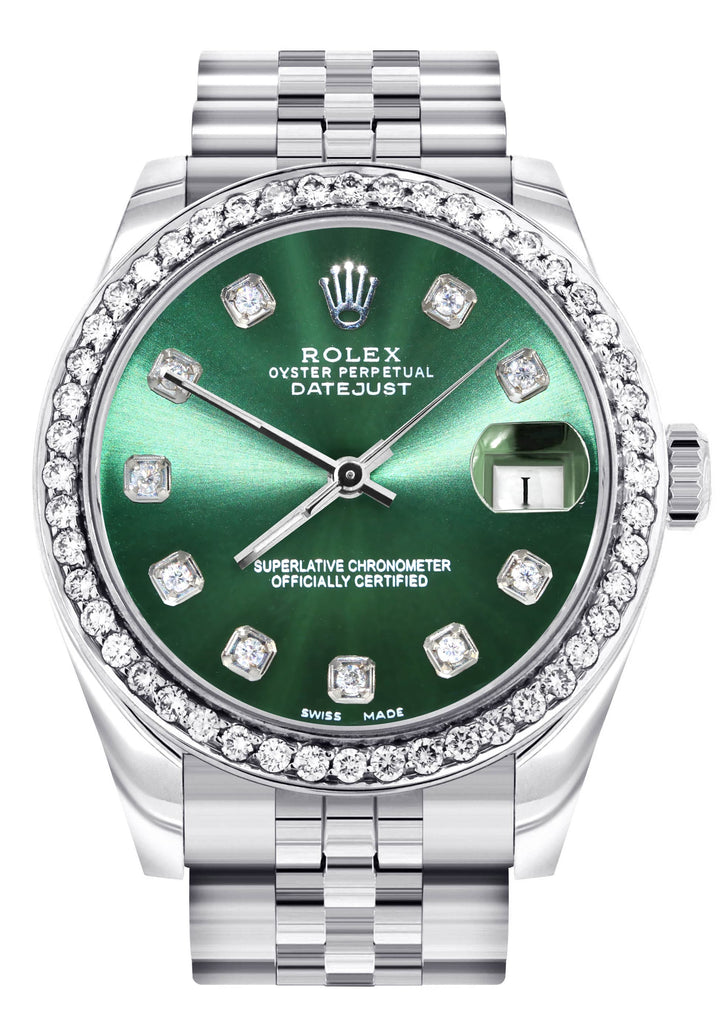 Diamond Rolex Watch | 68274 | Diamond Bezel | 31MM | Green Diamond Dial | Jubilee Band