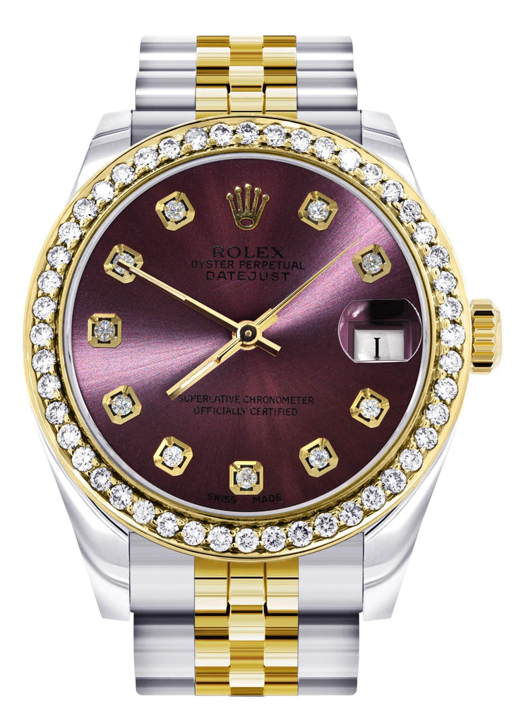 Diamond Rolex Watch | 68274 | Diamond Bezel | 31MM | Purple Diamond Dial | Jubilee Band