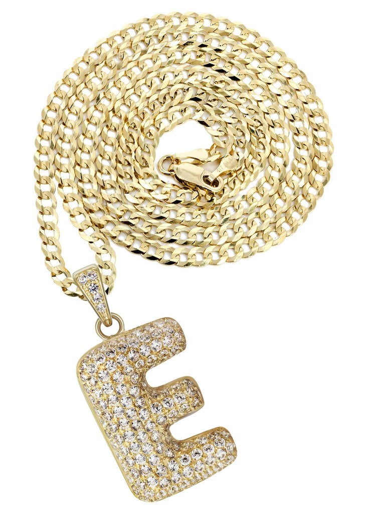 10K Yellow Gold Bubble Letter "E" CZ Necklace | Appx. 13.3 Grams