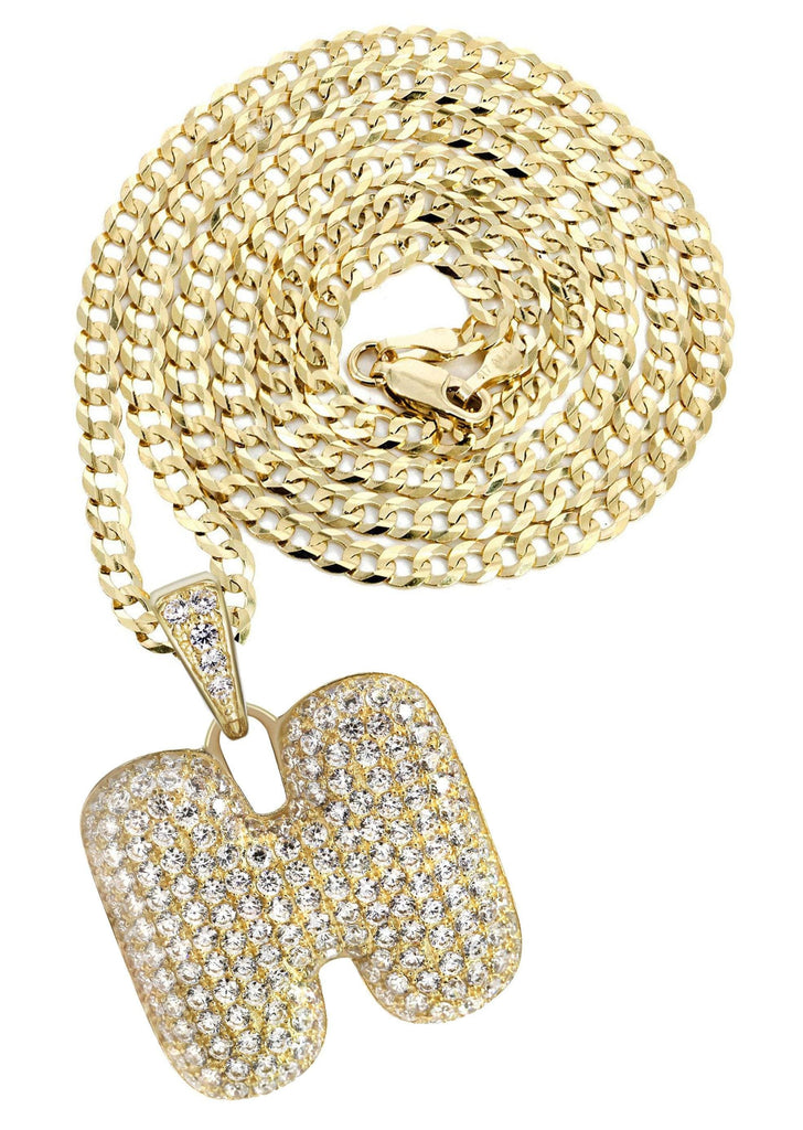10K Yellow Gold Bubble Letter "H" CZ Necklace | Appx. 14.5 Grams