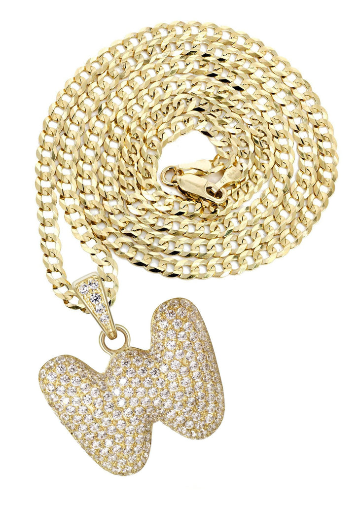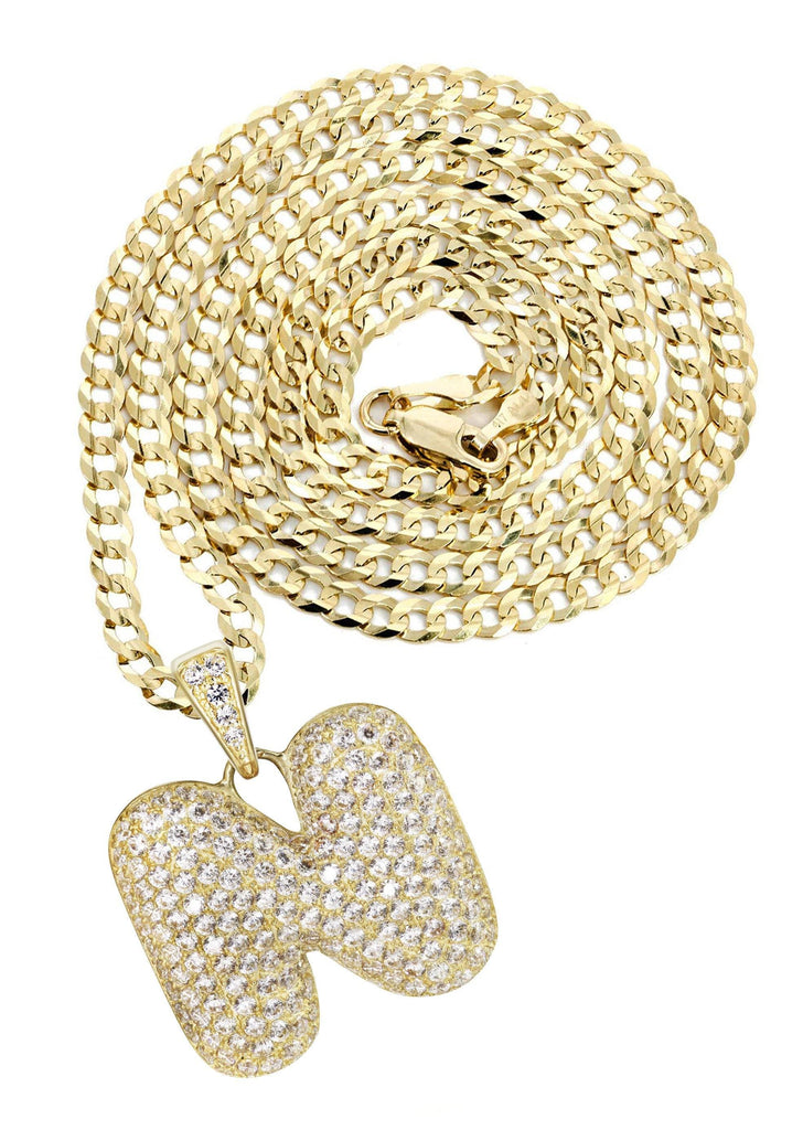 10K Yellow Gold Bubble Letter "N" CZ Necklace | Appx. 15.5 Grams