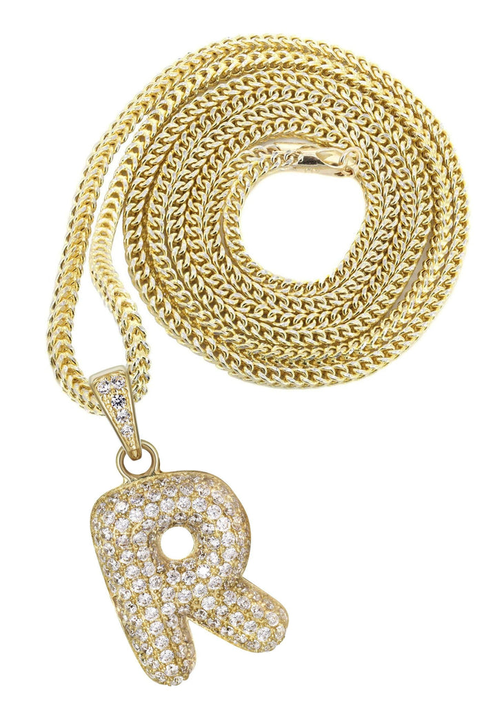 10K Yellow Gold Bubble Letter "R" CZ Necklace | Appx. 13.6 Grams