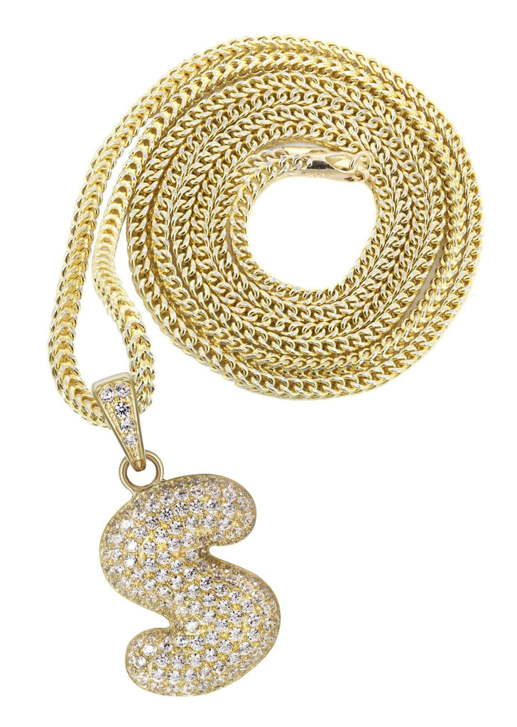 10K Yellow Gold Bubble Letter "S" CZ Necklace | Appx. 13.6 Grams
