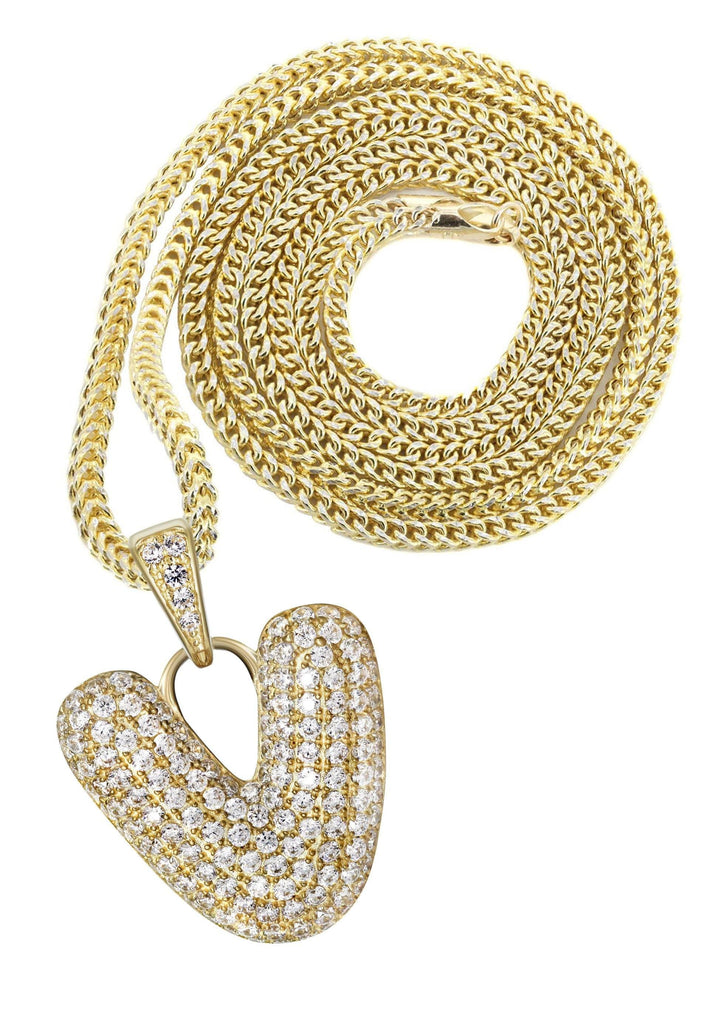 10K Yellow Gold Bubble Letter "V" CZ Necklace | Appx. 13.1 Grams