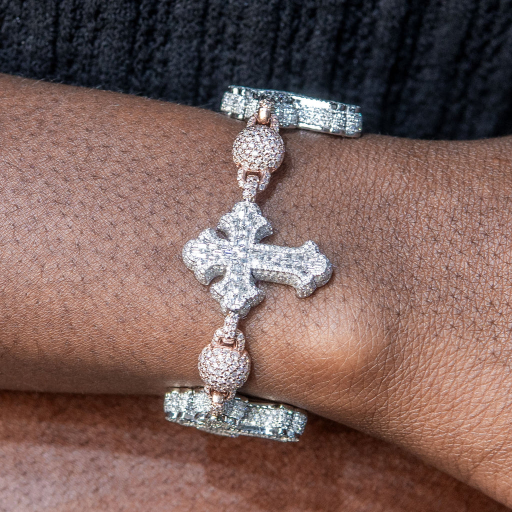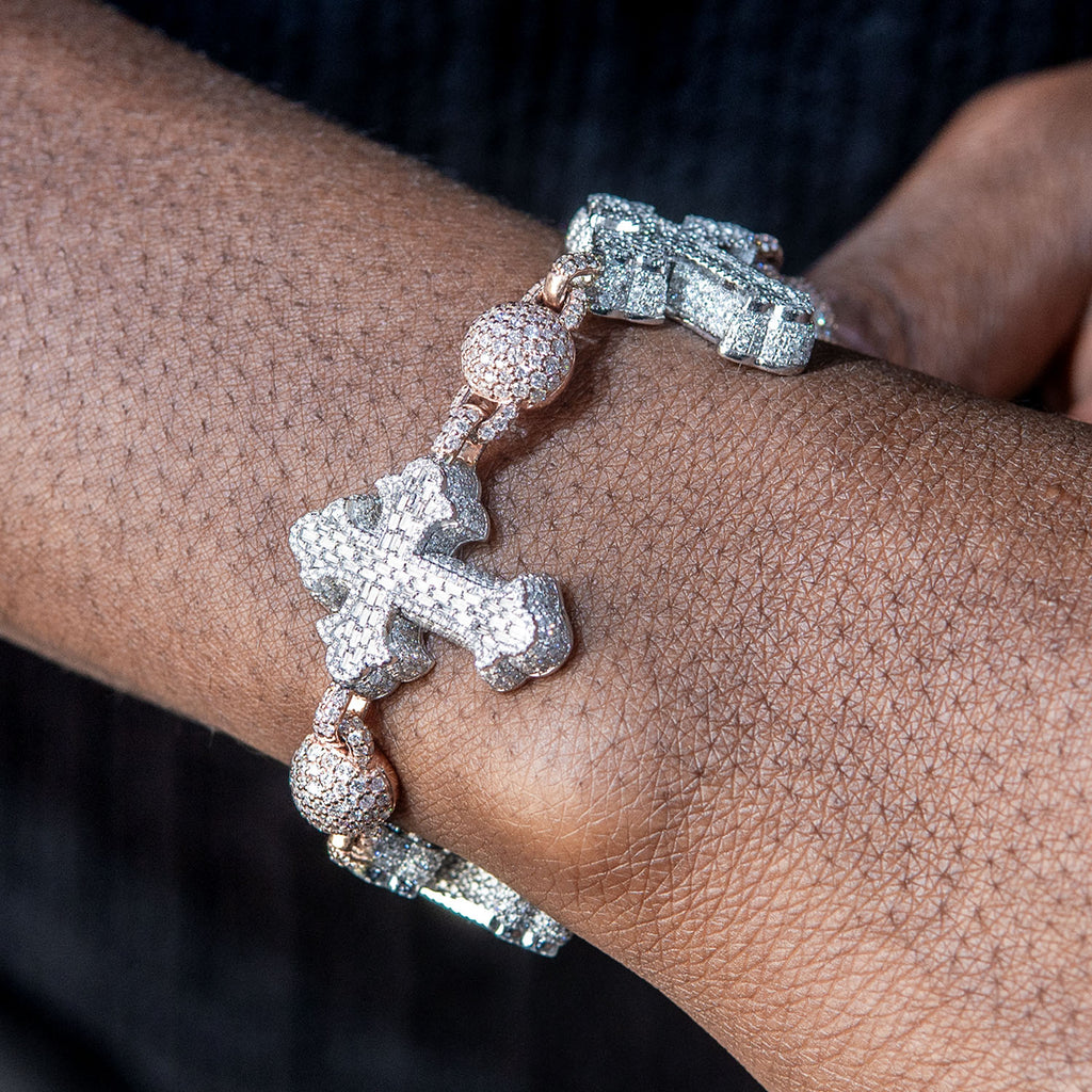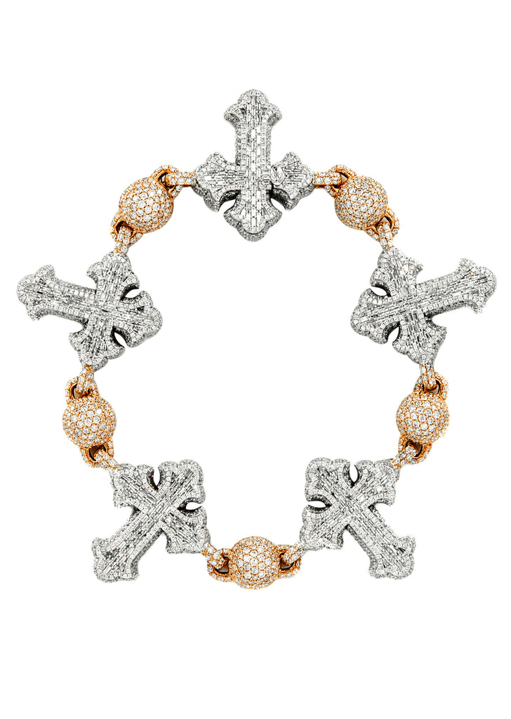 10K White & Rose Gold Iced Out Bracelet. This bracelet is customizable, so you can pick your length above. Once you selected your options, you can see the adjusted gram weight above the price. This bracelet comes in VS Clarity and G/H Color Quality Diamonds. All high jewelry comes with laboratory appraisal for insurance purposes.