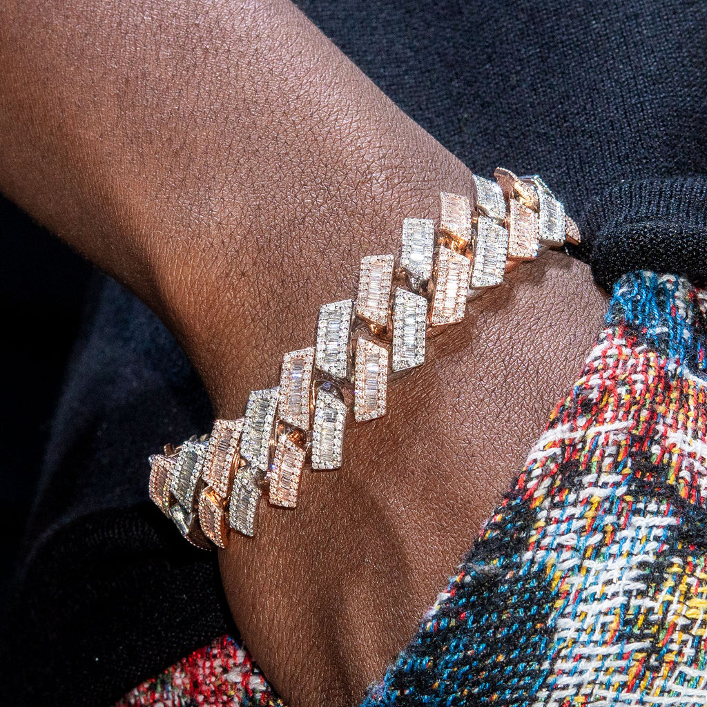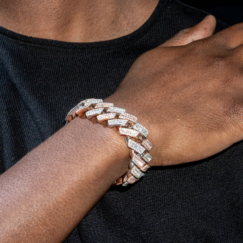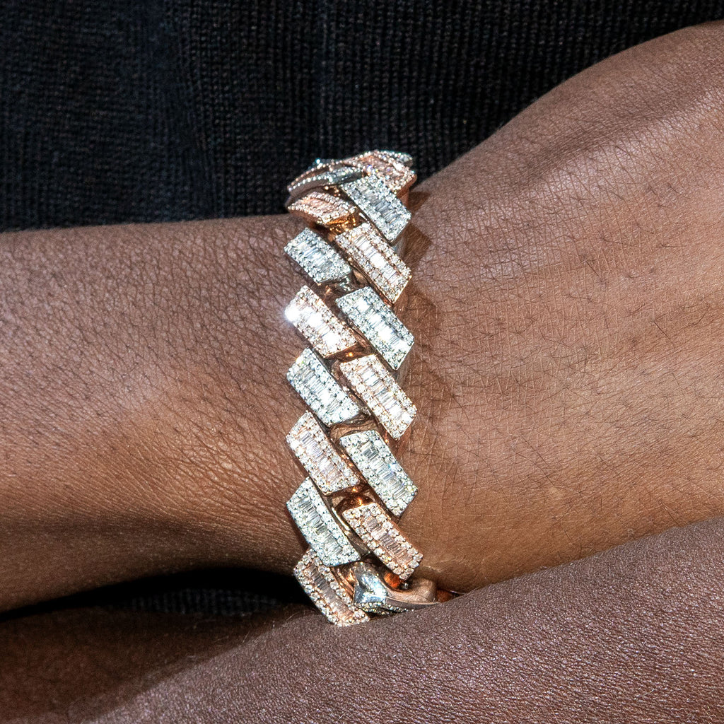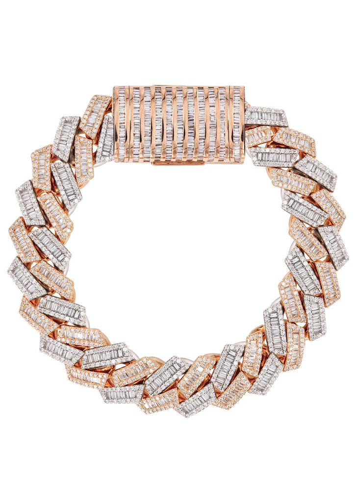 14K Rose & White Gold Iced Out Bracelet. This bracelet is customizable, so you can pick your length above. Once you selected your options, you can see the adjusted gram weight above the price. This bracelet comes in VS Clarity and G/H Color Quality Diamonds. All high jewelry comes with laboratory appraisal for insurance purposes. |