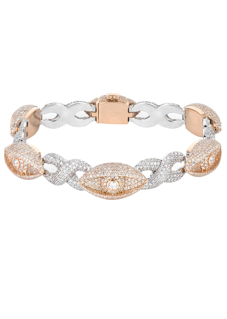 10K Rose & White Gold Iced Out Bracelet. This bracelet is customizable, so you can pick your length above. Once you selected your options, you can see the adjusted gram weight above the price. This bracelet comes in VS Clarity and G/H Color Quality Diamonds. All high jewelry comes with laboratory appraisal for insurance purposes. |