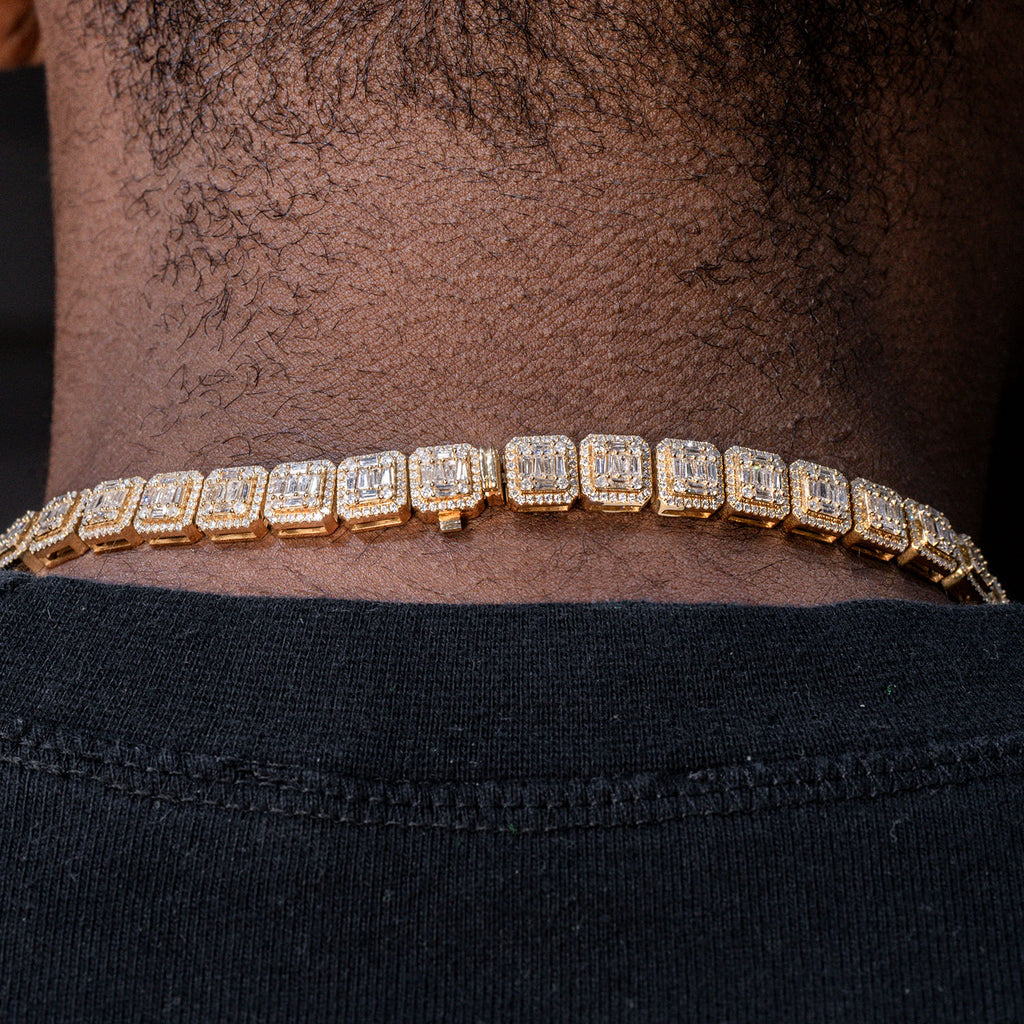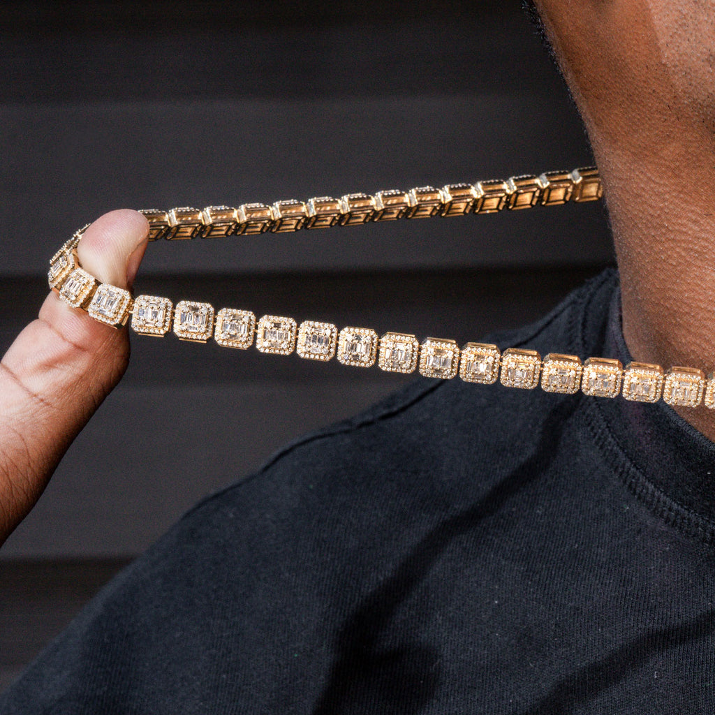 14K Yellow Gold Iced Out Chain. This chain is customizable, so you can pick your length above. Once you selected your options, you can see the adjusted gram weight above the price. This chain comes in VS Clarity and G/H Color Quality Diamonds. All high jewelry comes with laboratory appraisal for insurance purposes. |