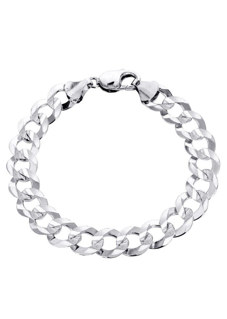Solid Mens Cuban Curb Link Bracelet 10K/14K White Gold