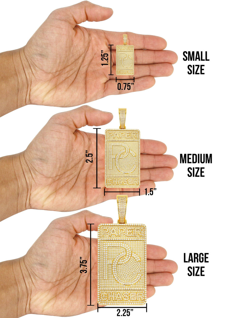 Customize your piece in 10K or 14K Yellow, Rose or White Gold - piece comes in VS quality diamonds. Select the size you want to make it in - Small, Medium or Large, see picture for approximate size chart.  After picking you dimensions - type what you want your piece to say and we will custom build it for you.  Please allow 3 weeks for completion.