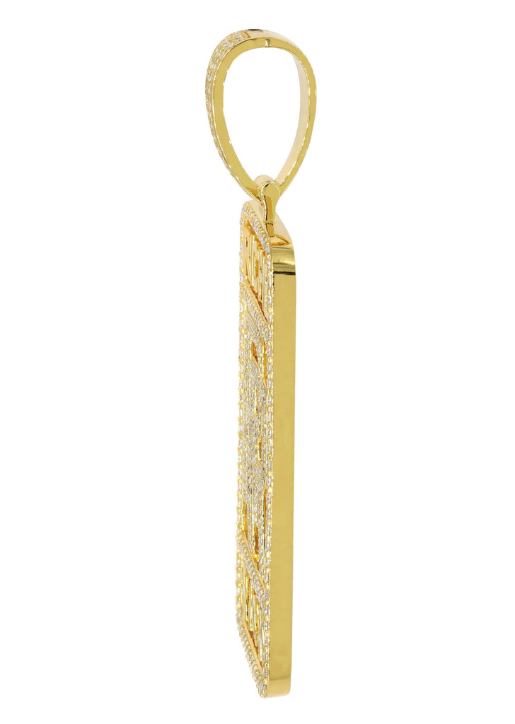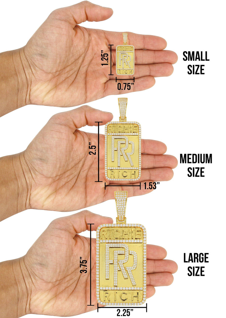 Customize your piece in 10K or 14K Yellow, Rose or White Gold - piece comes in VS quality diamonds. Select the size you want to make it in - Small, Medium or Large, see picture for approximate size chart.  After picking you dimensions - type what you want your piece to say and we will custom build it for you.  Please allow 3 weeks for completion.