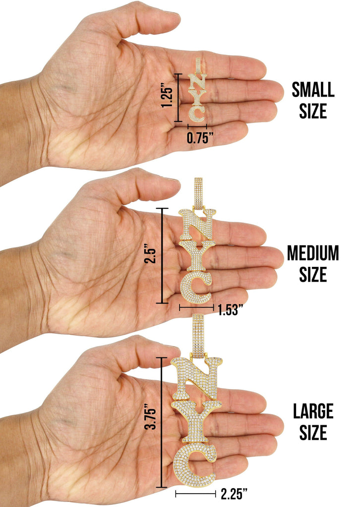 Customize your piece in 10K or 14K Yellow, Rose or White Gold - piece comes in VS quality diamonds. Select the size you want to make it in - Small, Medium or Large, see picture for approximate size chart.  After picking you dimensions - type what you want your piece to say and we will custom build it for you.  Please allow 3 weeks for completion.