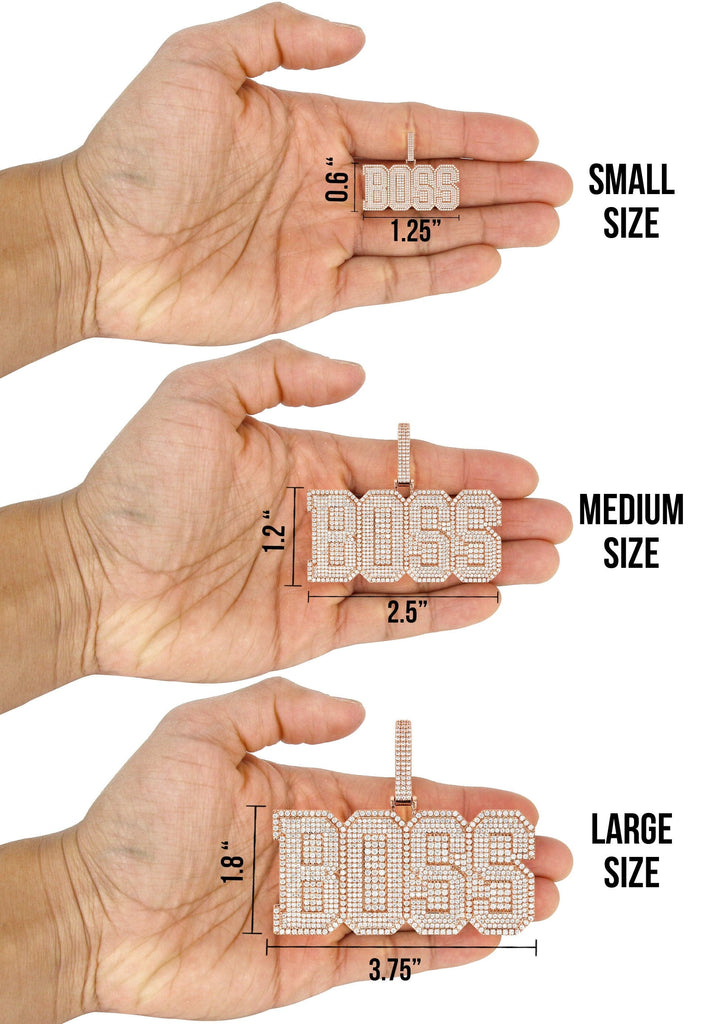 Customize your piece in 10K or 14K Yellow, Rose or White Gold - piece comes in VS quality diamonds. Select the size you want to make it in - Small, Medium or Large, see picture for approximate size chart.  After picking you dimensions - type what you want your piece to say and we will custom build it for you.  Please allow 3 weeks for completion.