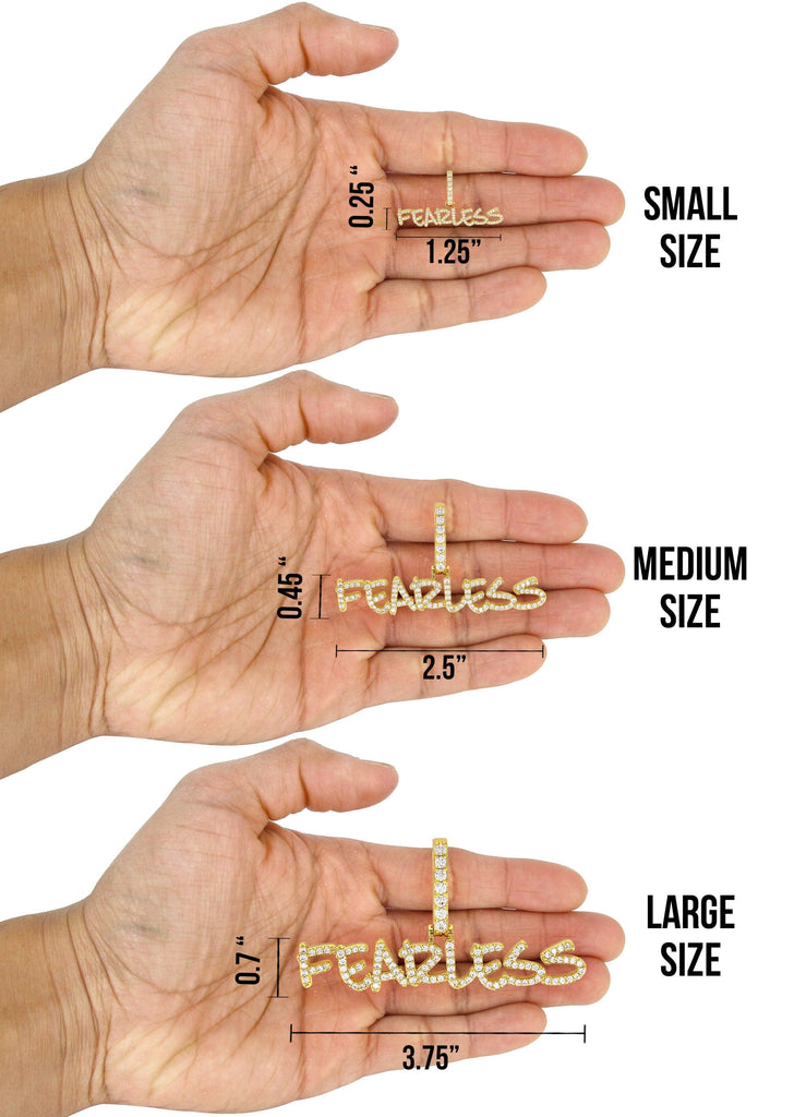 Customize your piece in 10K or 14K Yellow, Rose or White Gold - piece comes in VS quality diamonds. Select the size you want to make it in - Small, Medium or Large, see picture for approximate size chart.  After picking you dimensions - type what you want your piece to say and we will custom build it for you.  Please allow 3 weeks for completion.