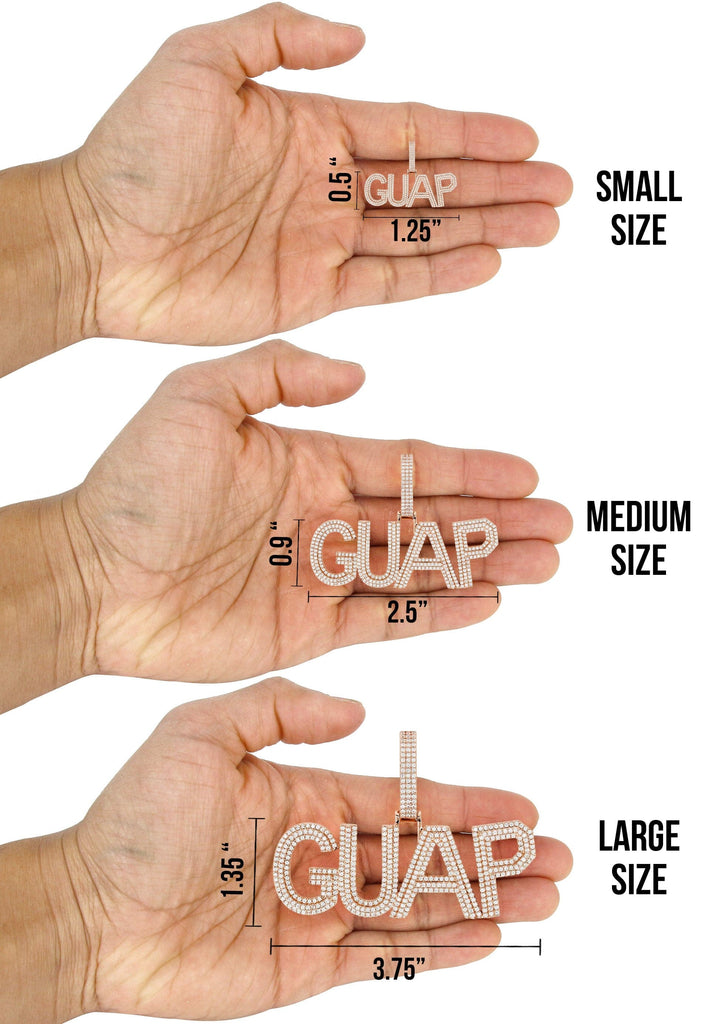 Customize your piece in 10K or 14K Yellow, Rose or White Gold - piece comes in VS quality diamonds. Select the size you want to make it in - Small, Medium or Large, see picture for approximate size chart.  After picking you dimensions - type what you want your piece to say and we will custom build it for you.  Please allow 3 weeks for completion.