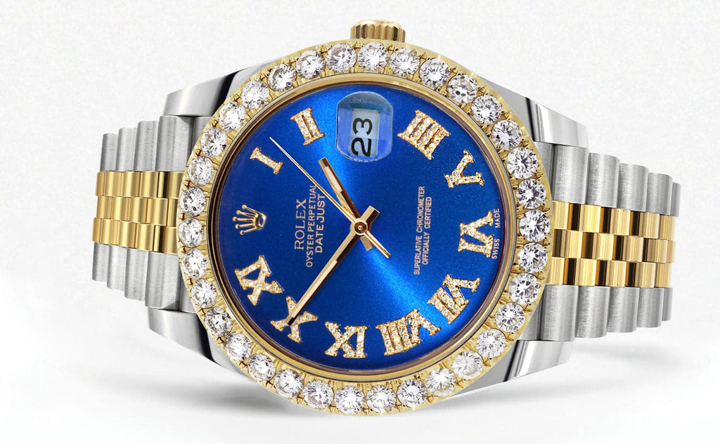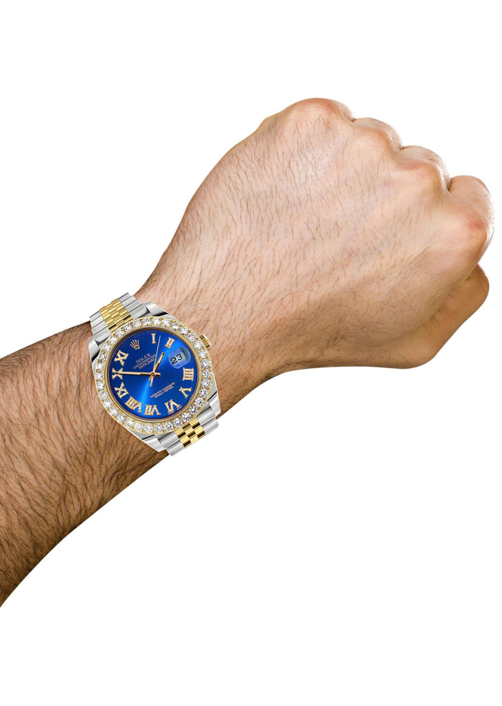 Rolex Datejust 41 Watch | 41 MM | 18K Yellow Gold & Stainless Steel | Custom Blue Roman Dial | Jubilee Band