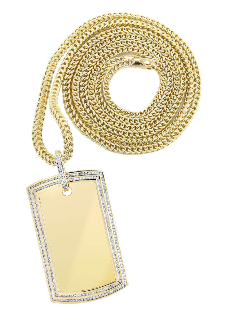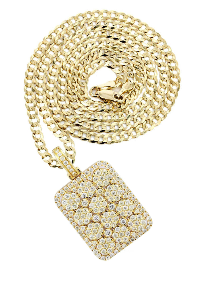 10K Yellow Gold Dog Tag Diamond Necklace | 2.35 Carats