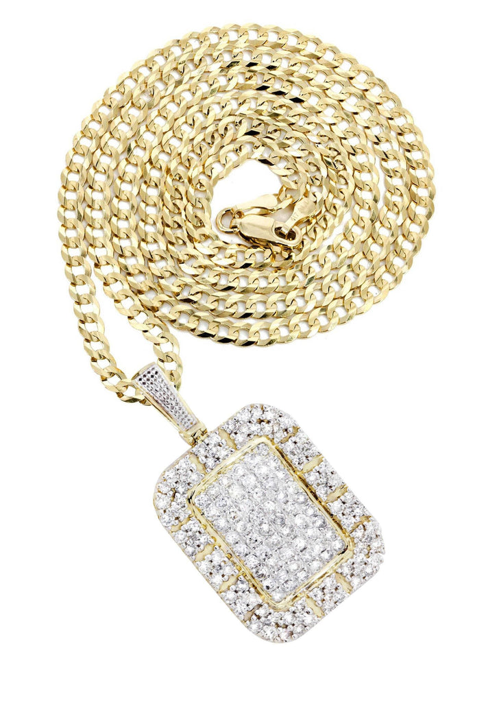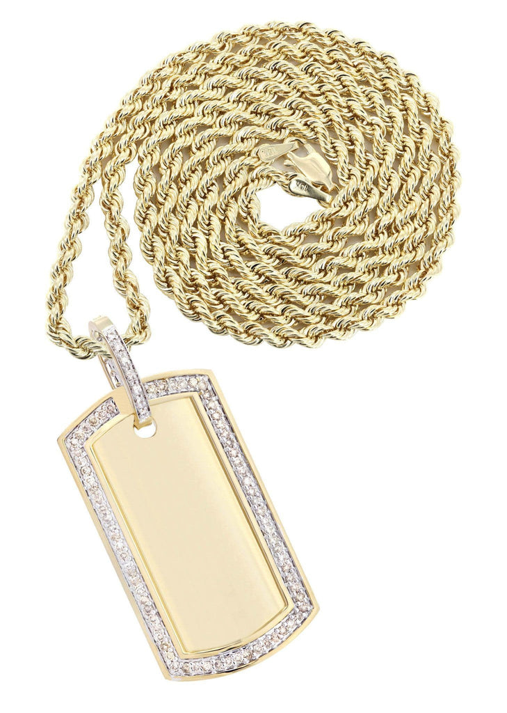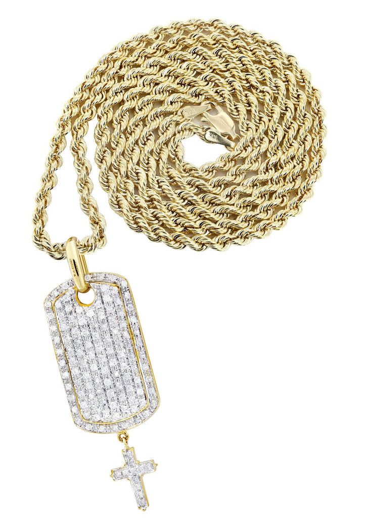 10K Yellow Gold Dog Tag Diamond Necklace | 1.06 Carats