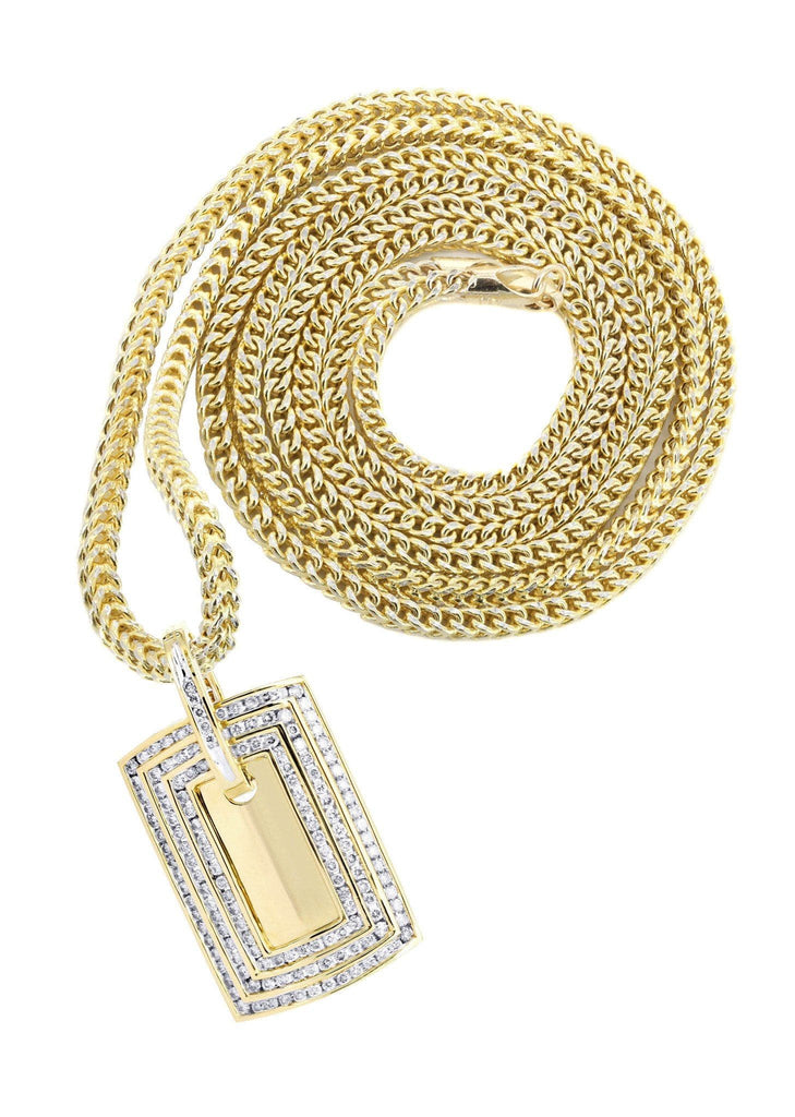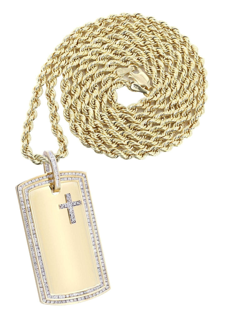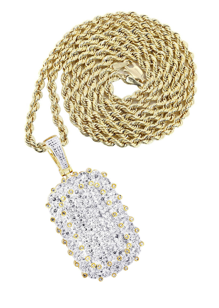 10K Yellow Gold Dog Tag Diamond Necklace | 2.42 Carats