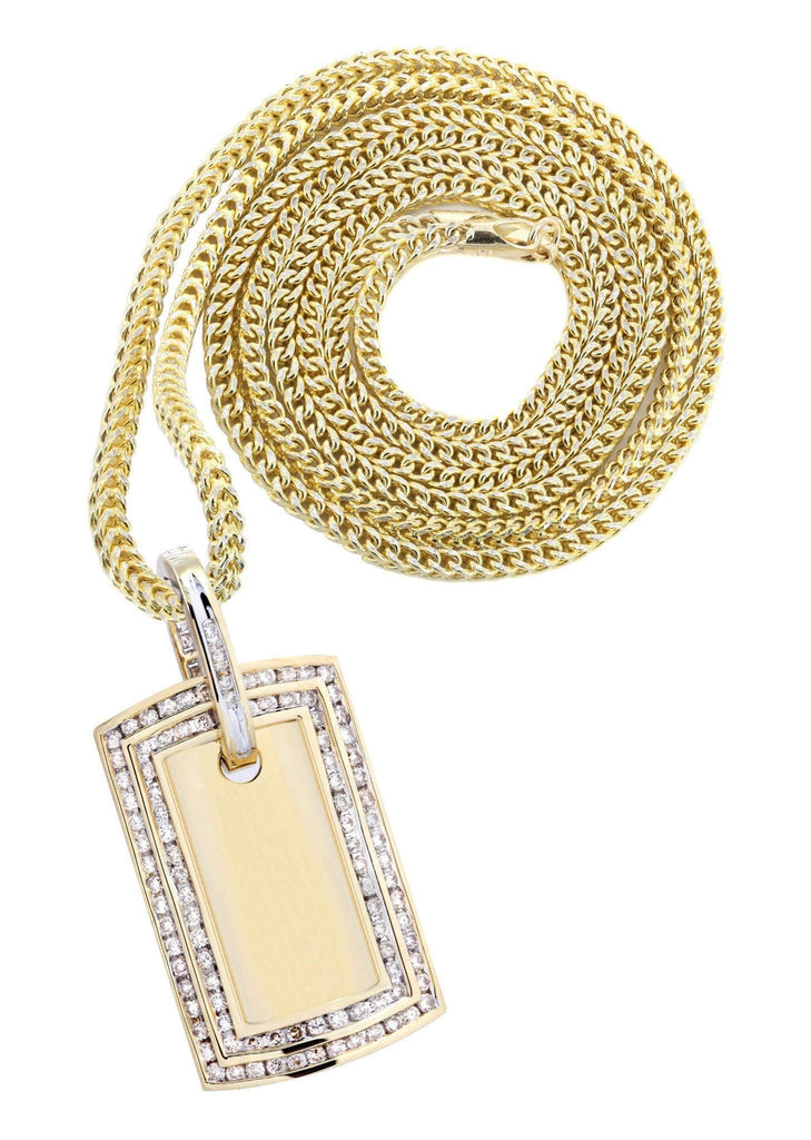10K Yellow Gold Dog Tag Diamond Necklace | 1.61 Carats