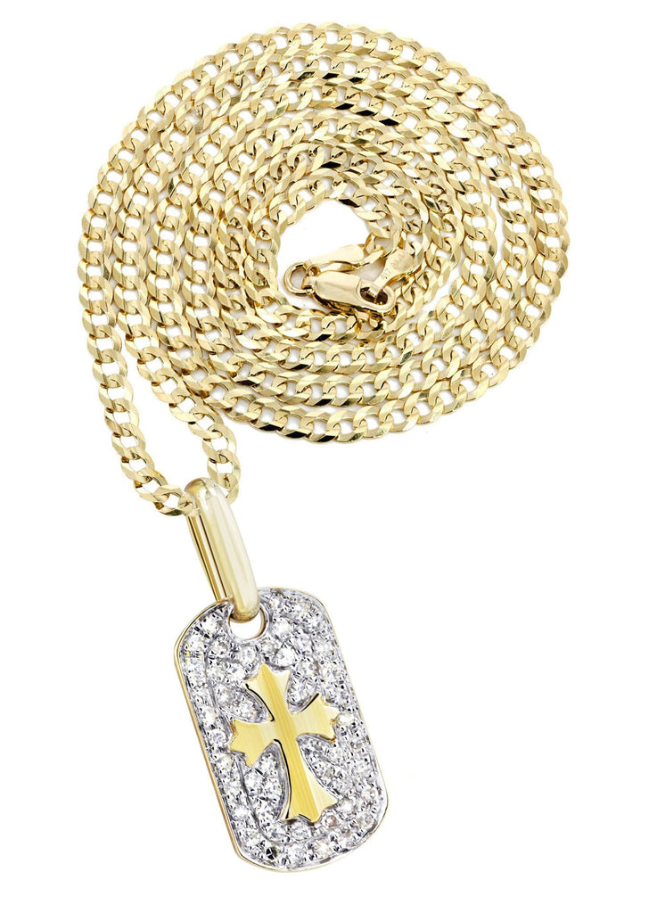 10K Yellow Gold Dog Tag Diamond Necklace | 0.47 Carats