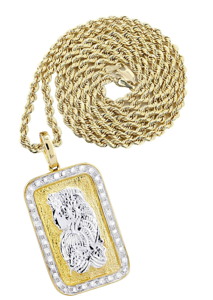10K Yellow Gold Dog Tag Diamond Necklace | 6.05 Carats