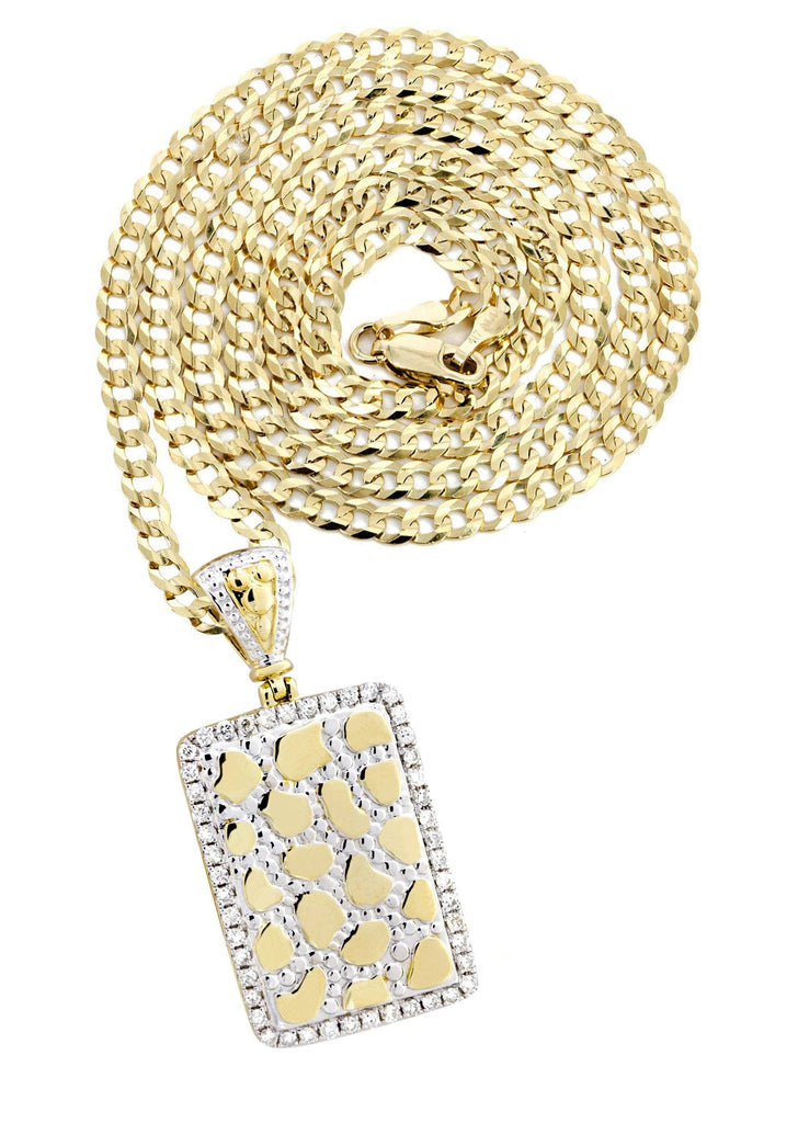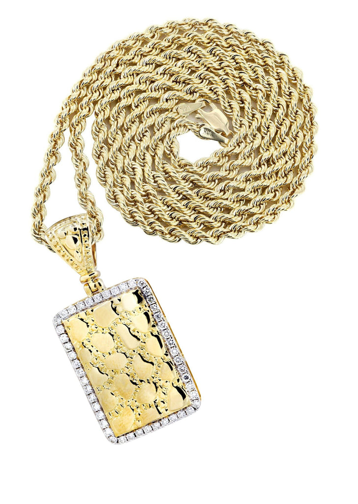 10K Yellow Gold Nugget Dog Tag Diamond Necklace | 0.84 Carats