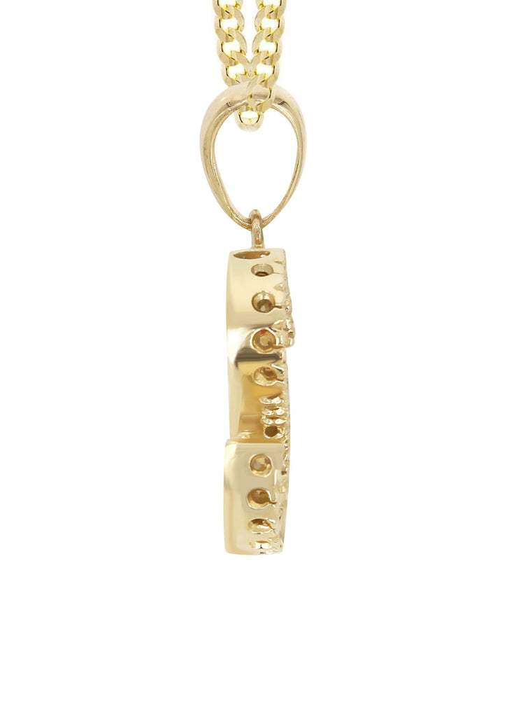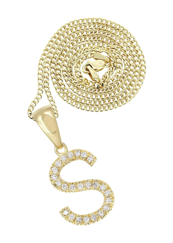14K Gold Diamond Ladies Initial Pendant and Cuban Chain .75 Carats of Round Brilliant Cut Diamonds . The length of the pendant is 0.72 inches and the width is 0.6 inches. The pendant comes with a Cuban chain which can be selected to any length above. Due to the custom nature of this product, please allow 10-14 business days for completion.