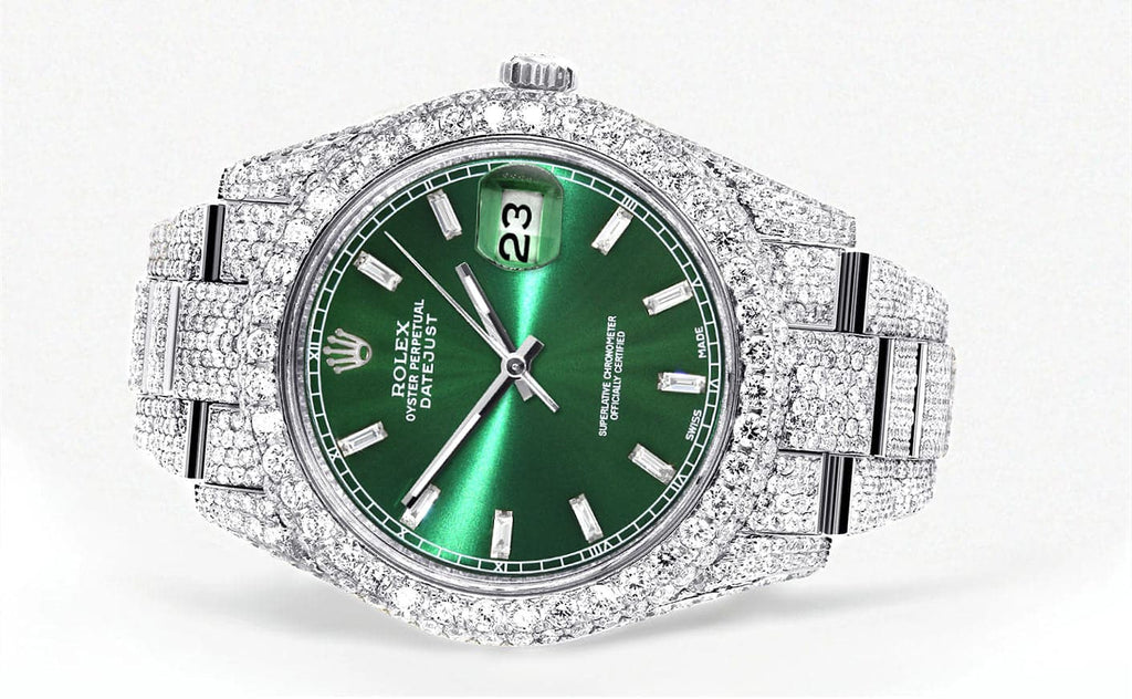 Diamond Iced Out Rolex Datejust 41 | 25 Carats Of Diamonds | Green Diamond Dial | Two Row | Oyster Band